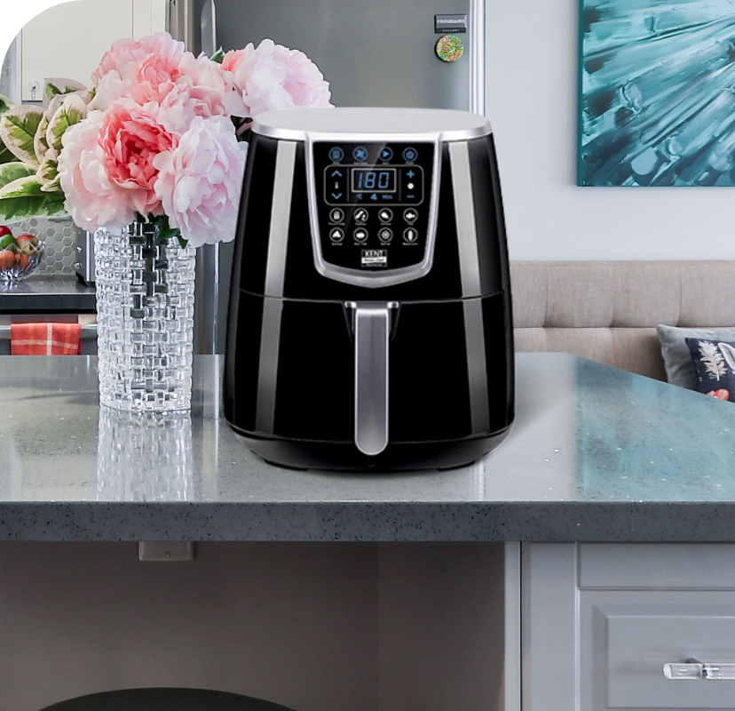 KENT HotAir Fryer comes with 8 pre-set functions for the ease of operation. French Fries | Peanuts | Chicken | Fish | Samosa | Aloo Tikki | Defrost | Baked Bacon