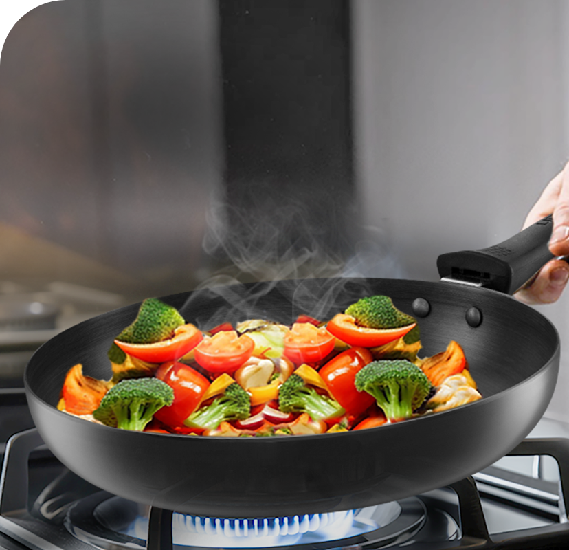 KENT Hard Anodised Fry Pan has a thick 3.25mm base which ensures even heat distribution and eliminate overheating and overcooking. It also helps the cookware to withstand high heat level.