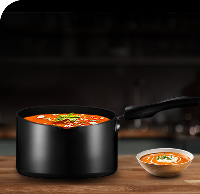 KENT Hard Anodised Sauce Pan is made from high-grade Hindalco Aluminium, which can withstand high heat temperatures and ensure durability and reliability in the kitchen.