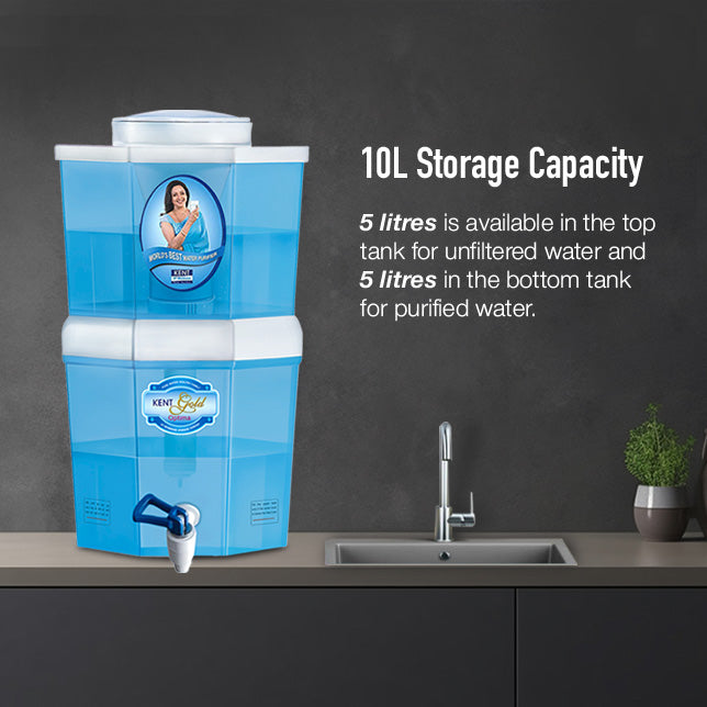 High Storage Capacity is of 10L (5 litres each for purified and unfiltered water)
