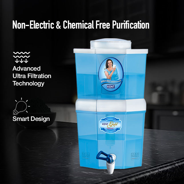 KENT Gold optima uses hollow fibre hydrophilic UF membrane to remove bacteria and cysts