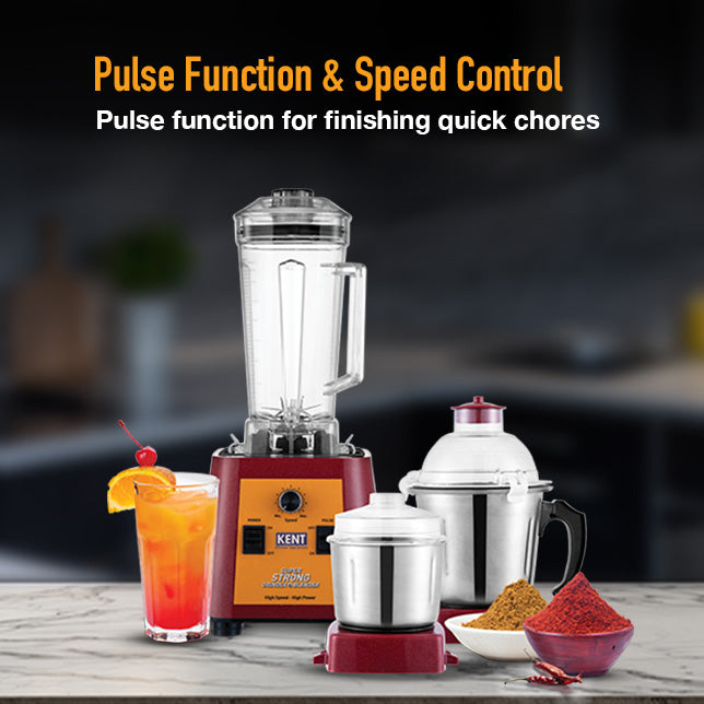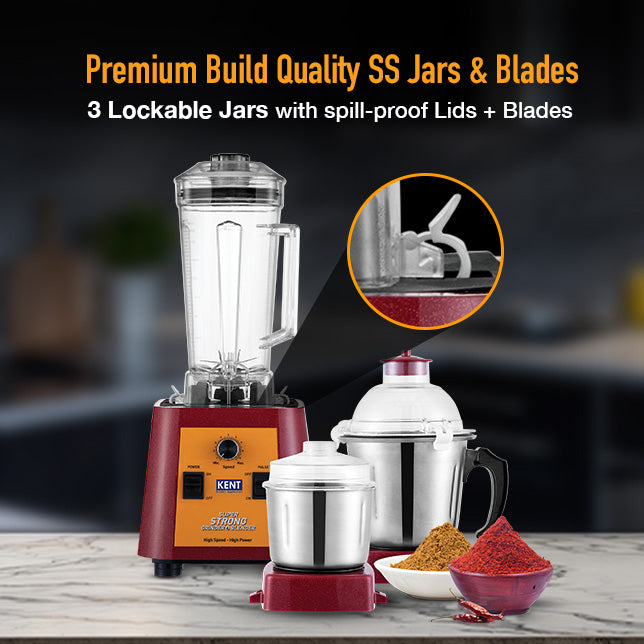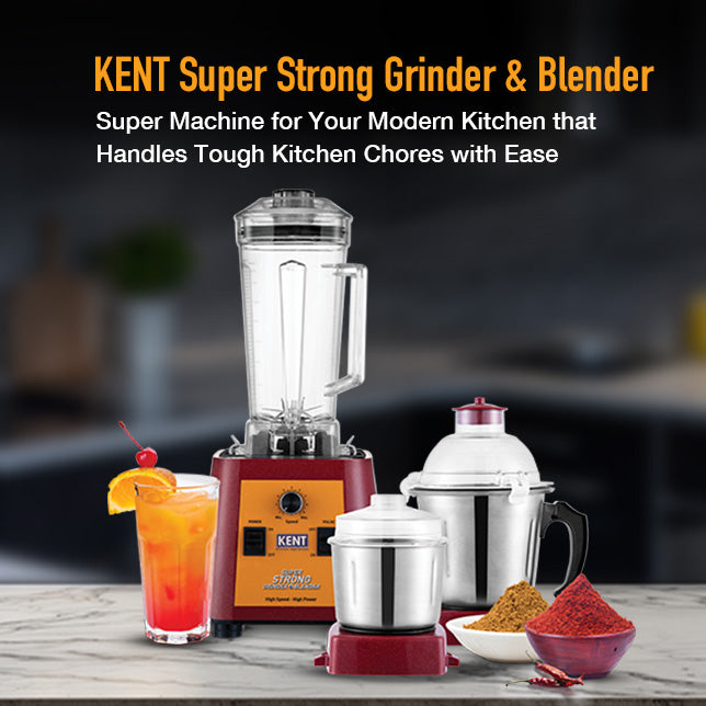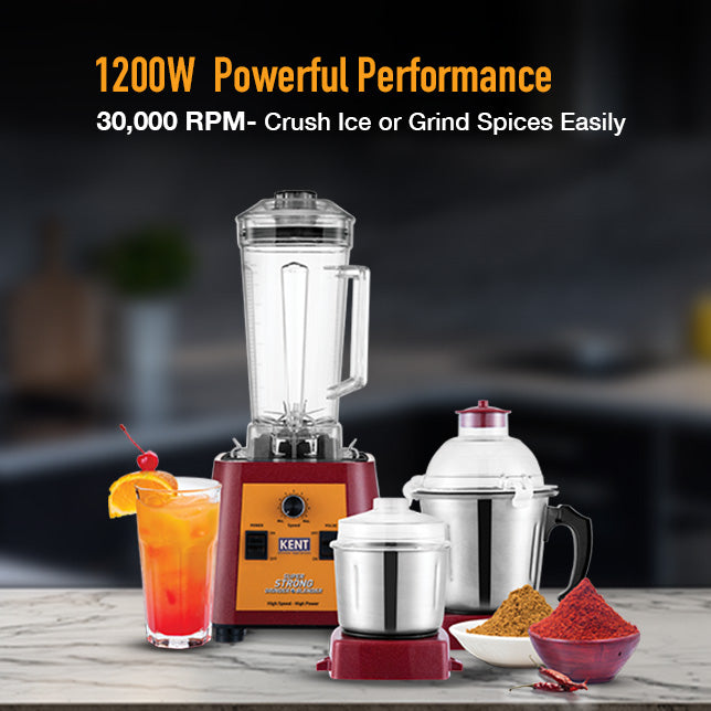 Upgrade your kitchen with the KENT Super Strong Grinder & Blender, a 1200W powerhouse designed to handle tough chores with ease. From smoothies and chutneys to dosa batter and raw haldi, its 30,000 RPM motor delivers fast and consistent results. Equipped with BPA-Free and stainless-steel jars, spill-proof lids, pulse function and speed control, it makes healthy and homemade cooking effortless and safe.