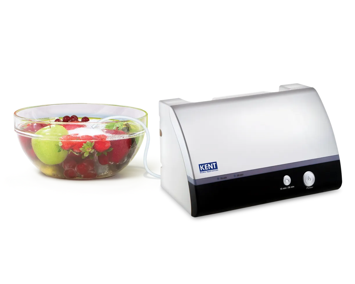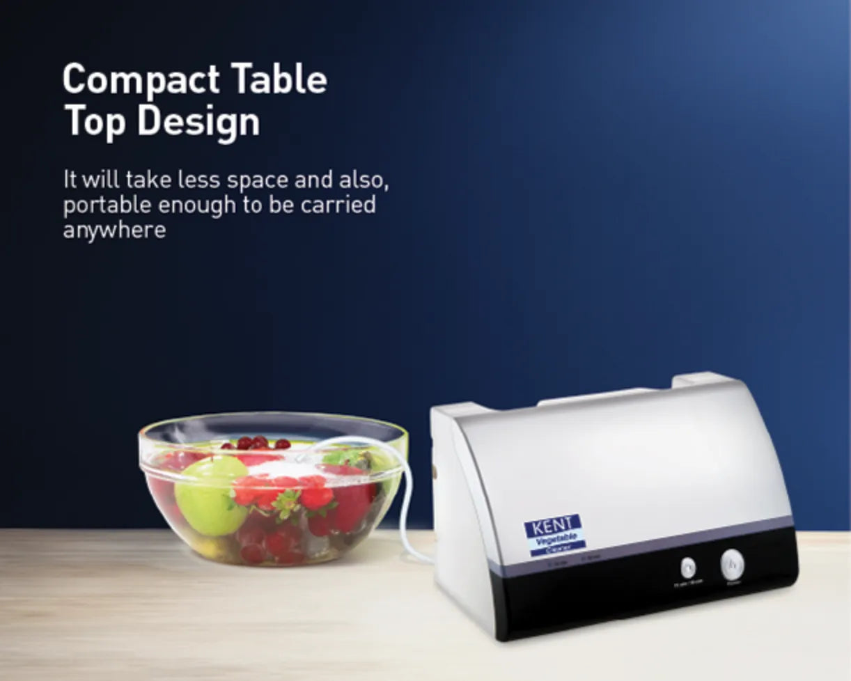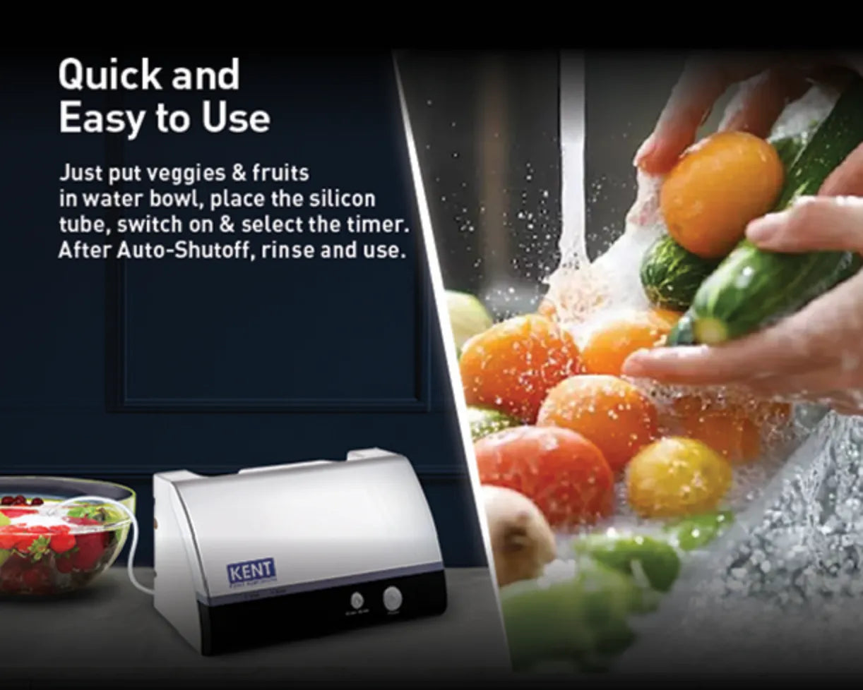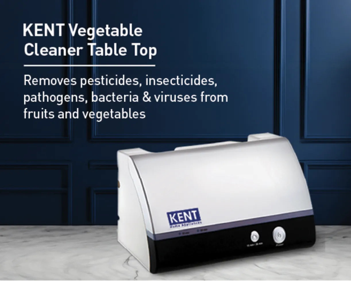 Only rinsing your Fruits and Vegetables with water is not enough. Market-bought fruits, vegetables, meat and seafood pass through farms, transport, storage and multiple handling points increasing the risk of chemical residues and cross-contamination. The KENT Vegetable Cleaner Countertop uses bio-friendly ozone disinfection technology to effectively remove insecticides, pesticides, bacteria, viruses and surface chemicals purifying the food items within 15-30 minutes.