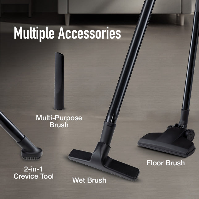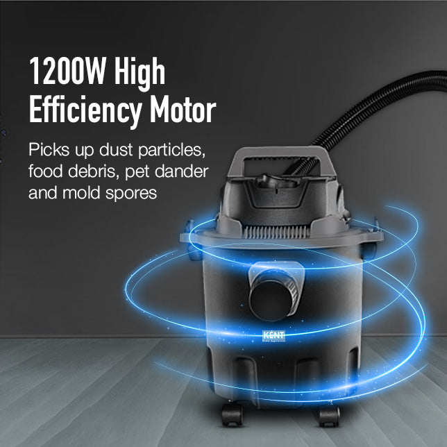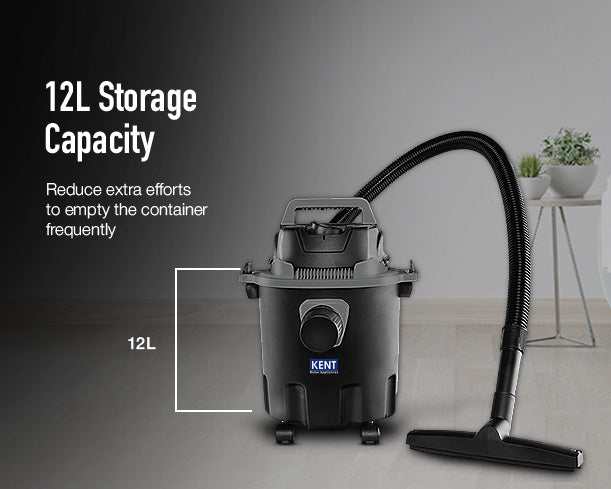 The KENT Vortex Plus Wet & Dry Vacuum Cleaner effortlessly cleans both dry dust and wet spills across multiple surfaces in homes and offices. Powered by a robust 1200W motor and a large 12L tank, it delivers deep cleaning with fewer interruptions. Equipped with versatile accessories, it ensures efficient all-round cleaning while the powerful blower removes stubborn dust from corners and hard-to-reach areas. Cyclone technology with a HEPA filter helps maintain cleaner air during operation.